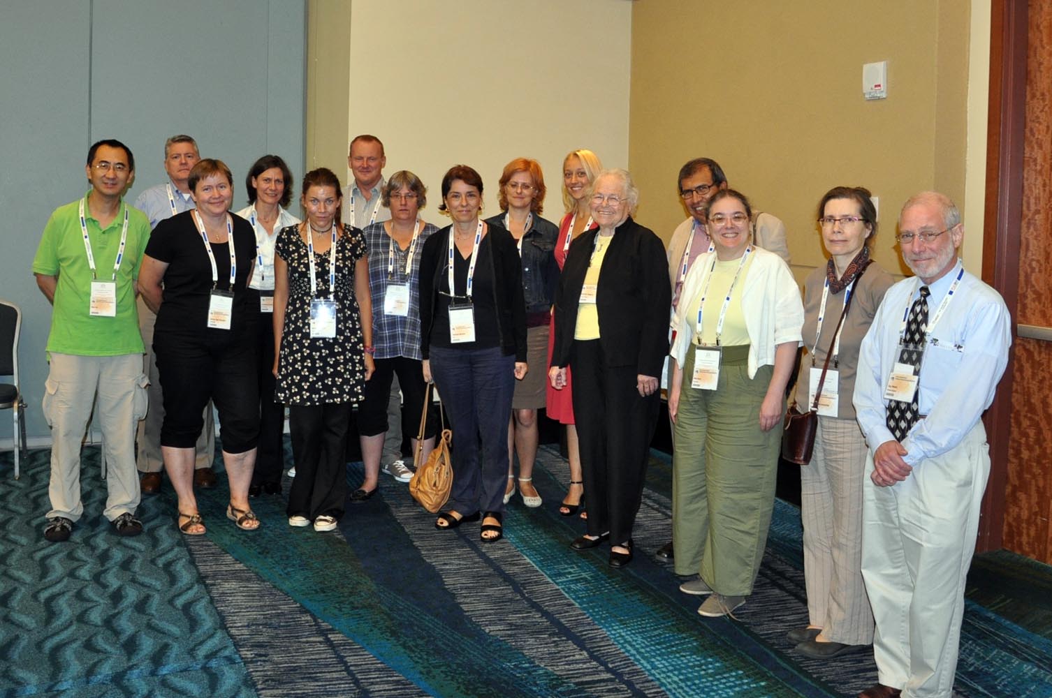 国际图联编目组常设委员会合影 / Standing Committee members of the IFLA Cataloguing Section (present): Caroline Brazier (The British Library, UK), Anders Cato (Kungliga Biblioteket, Sweden), Elena Escolano Rodríguez (Biblioteca Nacional, Spain), William A. Garrison (editor of newsletter) (Syracuse University Library, USA), Ben Gu (secretary) (National Library of China, People's Republic of China), Mauro Guerrini (University of Florence, Italy), Bodil Gustavsson (Stockholm University Library, Sweden), John Hostage (information coordinator) (Harvard Law School Library, USA), Ulrike Junger (Staatsbibliothek zu Berlin, Germany), Judith A. Kuhagen (chair) (Library of Congress, USA), Jaesun Lee (corresponding member) (National Library of Korea), Eeva Murtomaa (National Library of Finland), Erik Oltmans (Koninklijke Bibliotheek, The Netherlands), Pat Riva (Bibliothèque et Archives nationales du Québec, Canada), Margaret Stewart (Library and Archives Canada / Bibliothèque et Archives Canada), Erik Thorlund Jepsen (Danish Library Agency, Denmark), Jay Weitz (OCLC Online Computer Library Center, USA)